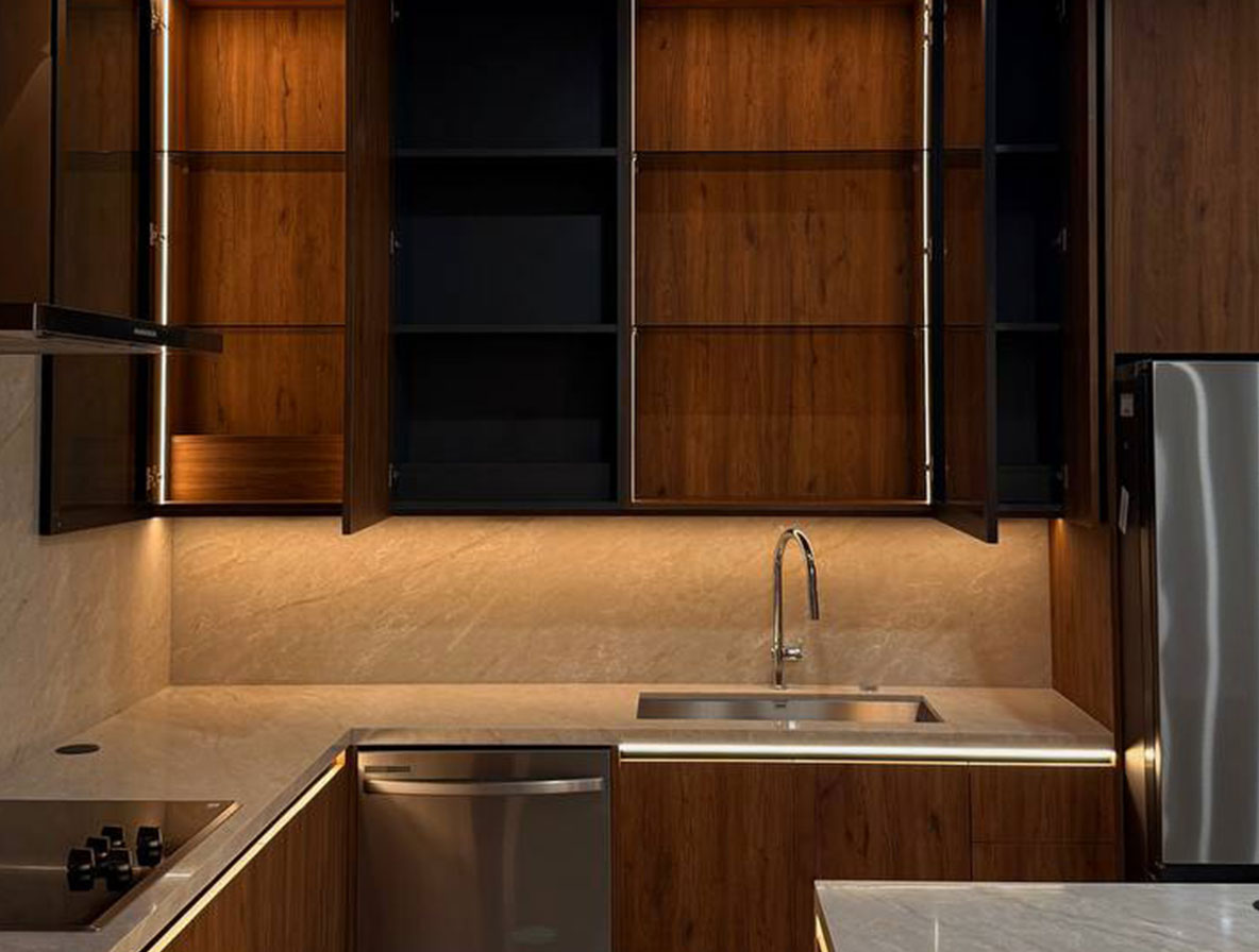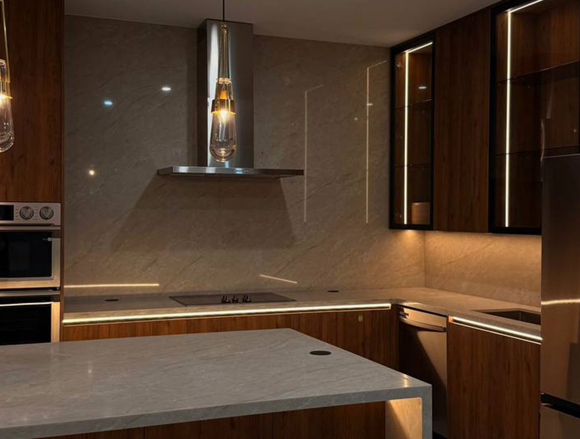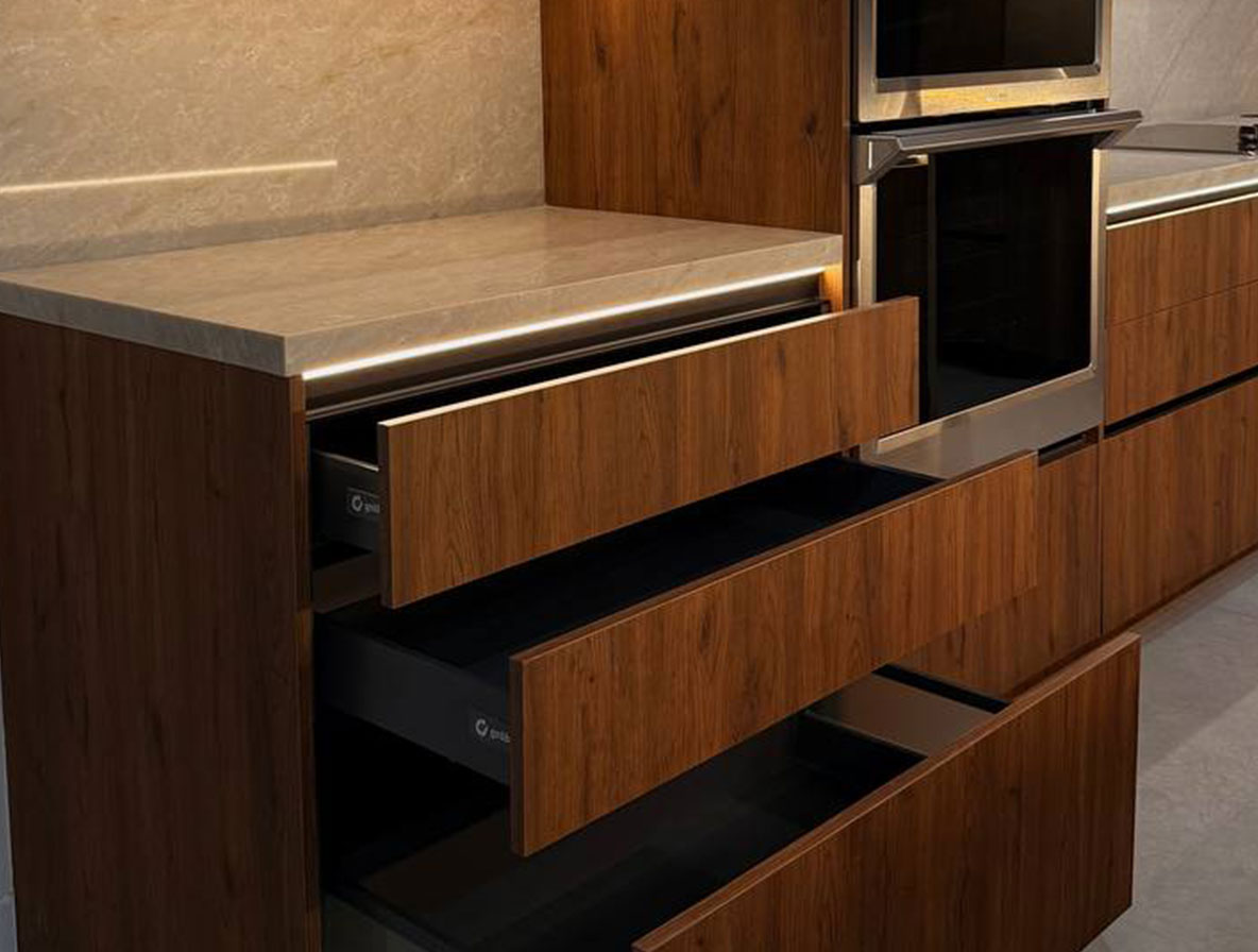 We source high-quality materials and appliances from a curated list of trusted local and international suppliers. Our cabinetry is custom-built for your project, and we work with a wide range of materials from natural woods and veneers to high-end European laminates and lacquers. For appliances, we partner with premium brands like Sub-Zero, Wolf, Miele, Gaggenau, and Thermador to ensure your kitchen is as functional as it is beautiful.